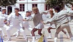 クラシカルなフランスのミュージカル映画のオープニングシーンで、曲も振付も衣装も、お洒落でエレガントなスタイルになります。