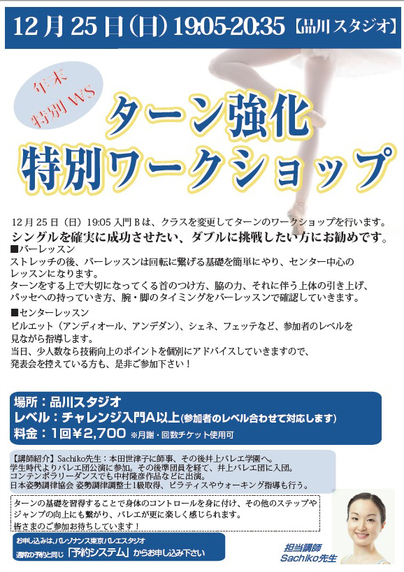 - 25日(日)ターンワークショップ開催【品川スタジオ】